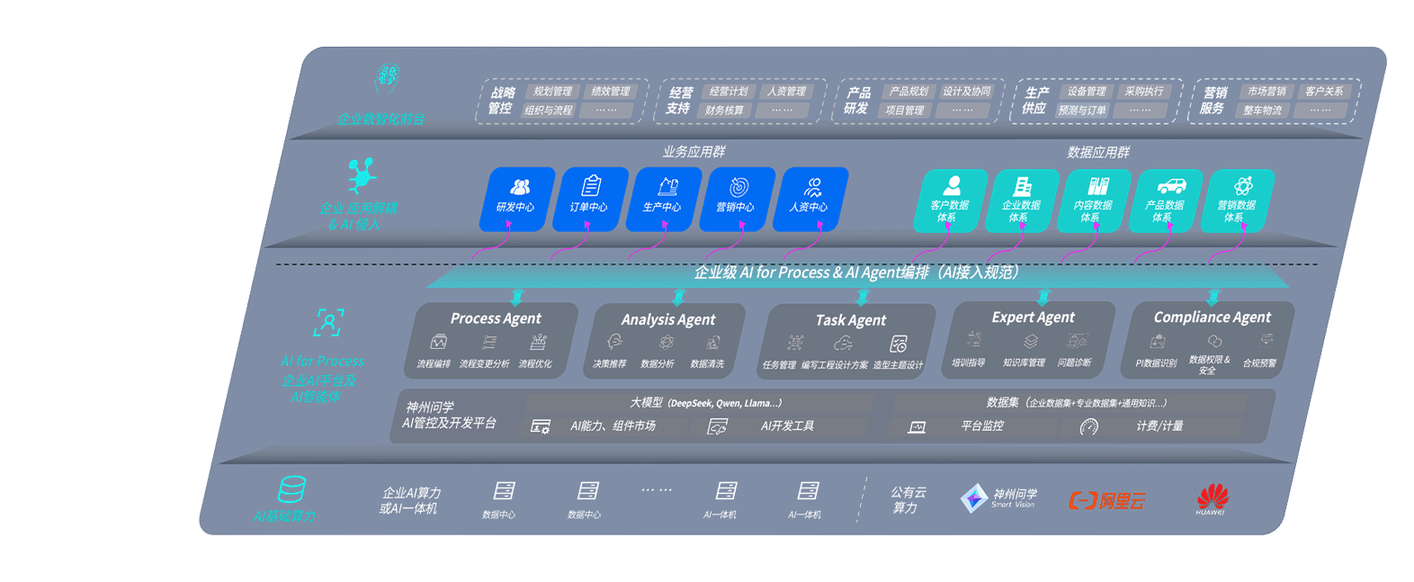 端到端的一站式AI工作空间深度融合了从企业战略规划到日常经营的全流程业务板块,,,定向解决车企内部领域多、、部门多、、链条长、、、、场景碎片化等难题,,,,支持车企快速构建以AI为核心的生产力写作体系,,,,实现任务执行与AI能力的无缝集成与交互